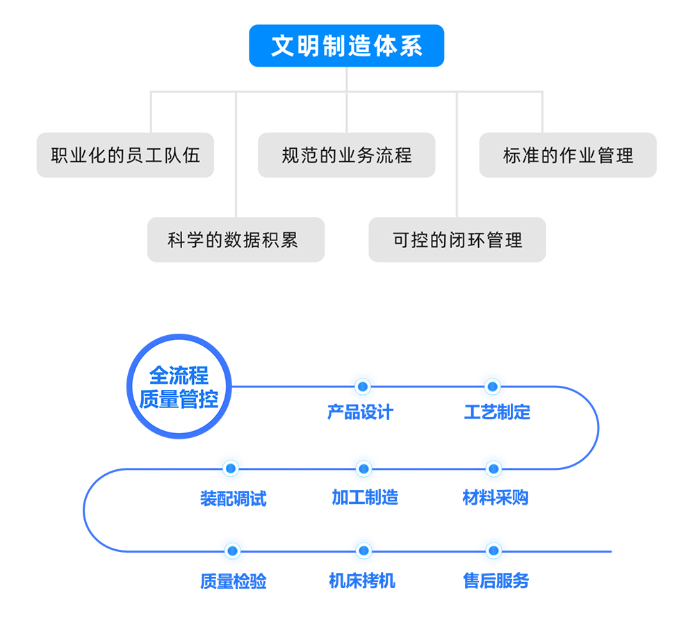 · 倡导“精益求精的工匠精神”,构建文明制造体系,实施全流程质量管控,为产品质量的保障奠定了基础。