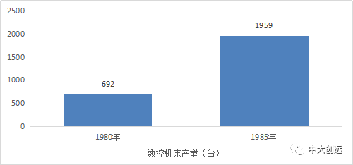 1981~1985年“六五”期间,是我国数控机床的起步阶段。该时期,机床工具行业共引进了113项国外技术,其中金属加工机床65项;自行开发了1225种新产品。中国的机床开始批量出口至44个国家和地区,本期累计出口机床32038台,出口金额42140.3万元。1985年全国机床保有量269.57万台。