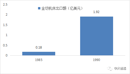 1986~1990年“七五”期间,是我国数控机床与国外的合作生产阶段。机床市场开始向国际市场进发,金切机床出口到128个国家和地区,由1985年的0.18亿美元增长至1990年的1.92亿美元,增长10.48倍。五年累计出口金切机床10.16万台,出口金额6.64亿美元。